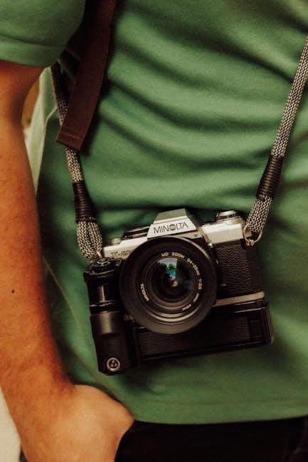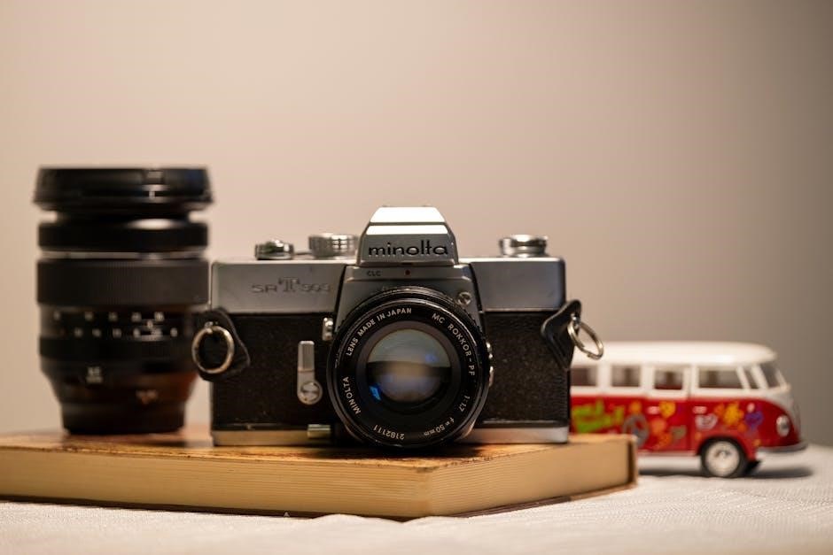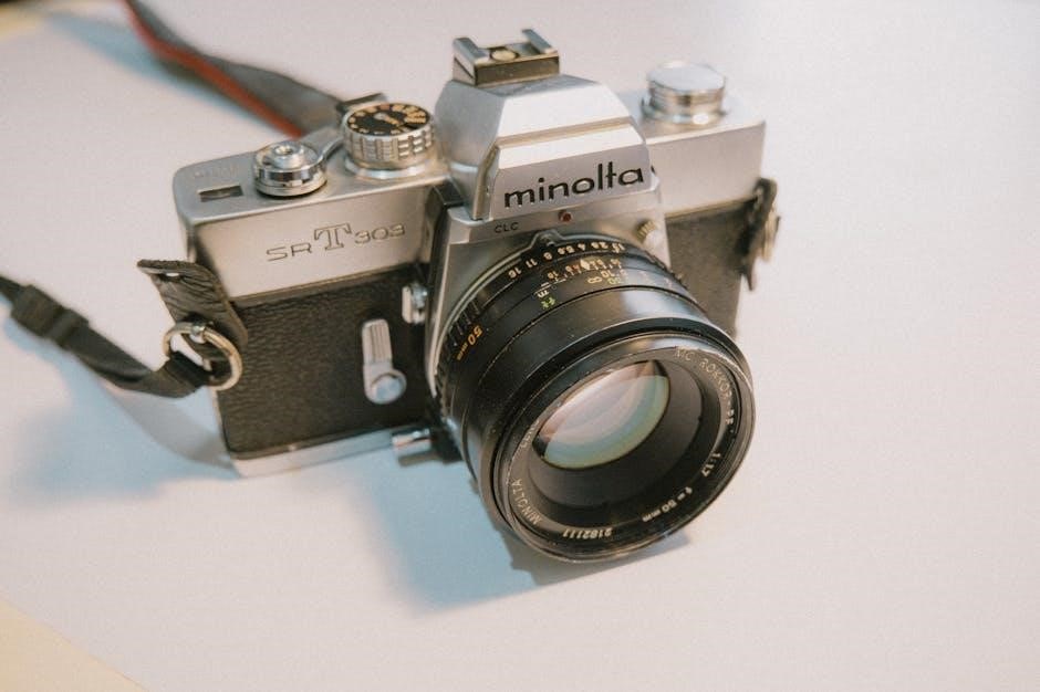 Furthermore‚ the guide mentions optional finders for specialized shooting scenarios‚ and a soft case for protection during transport. The manual provides guidance on proper accessory attachment and usage‚ ensuring compatibility and optimal results. It also notes that Minolta offered dedicated light meters for more precise exposure control‚ complementing the camera’s built-in metering system.